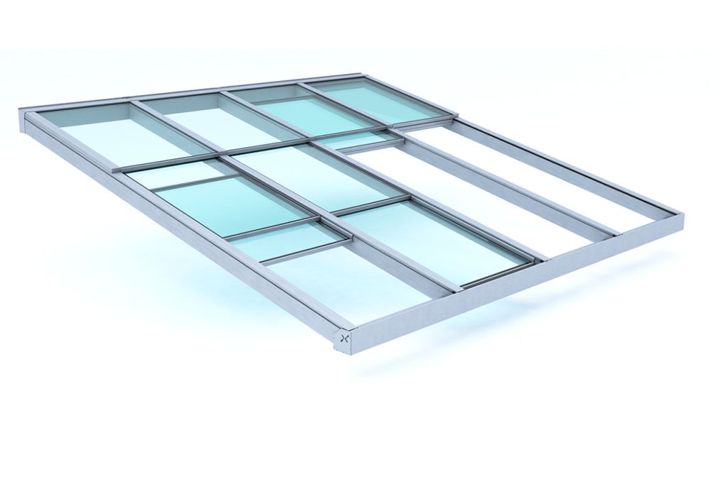 Η γυάλινη οροφή κατασκευάζεται με κοιλοδοκούς βαρέως τύπου, οι οποίες διαθέτουν εσωτερικό σύστημα απορροής των όμβριων υδάτων, ενώ το κράμα αλουμινίου μπορεί να ανοδιωθεί ή να χρωματιστεί σε μεγάλη ποικιλία ηλεκτροστατικών βαφών. Τα κρύσταλλα είναι διπλά – ασφαλείας και τρίπλεξ – ώστε να προσδώσουν τη μέγιστη δυνατή ασφάλεια, ενώ ο άνω υαλοπίνακας είναι κατασκευασμένος με τη μέθοδο της δομικής επικόλλησης (structural) προκειμένου να αποτρέπει τη δημιουργία φράγματος για πιθανή εισχώρηση των υδάτων.