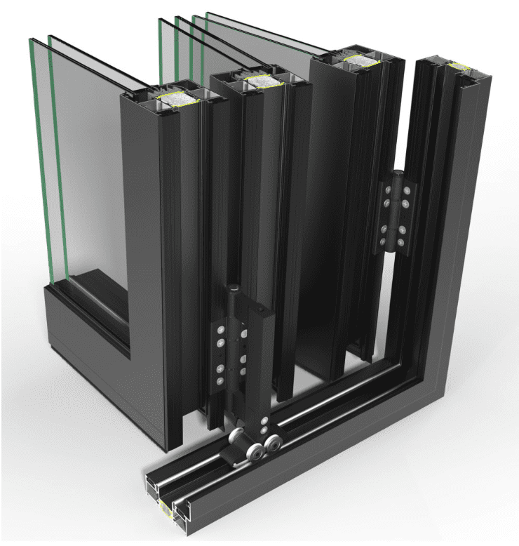 Η κύλιση του φύλλου στον κάτω οδηγό προσδίδει απόλυτα ομαλή λειτουργικότητα, παρά την στοιβαρότητα των προφίλ. Παράλληλα μέσω ειδικά σχεδιασμένων κατωκασίων παρέχεται ευκολότερη πρόσβαση για ΑμεΑ.. Τέλος με το προφίλ γωνιακής κολώνας τοποθετημένο επάνω στο φύλλο επιτυγχάνεται ανεμπόδιστη θέα κατά το άνοιγμα των φύλλων της κατασκευής.