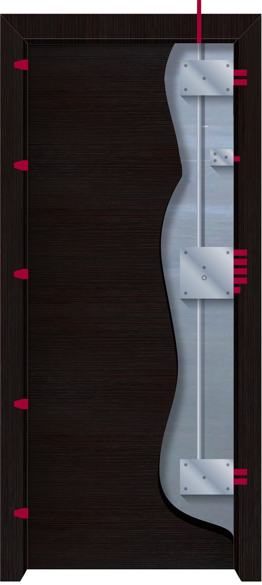 - Φύλλο πόρτας με ενισχυμένη μονή θωράκιση από ηλεκτρόγαλβανιζέ λαμαρίνα εξωτερικά & DKP 1.5mm εσωτερική ενίσχυση.
